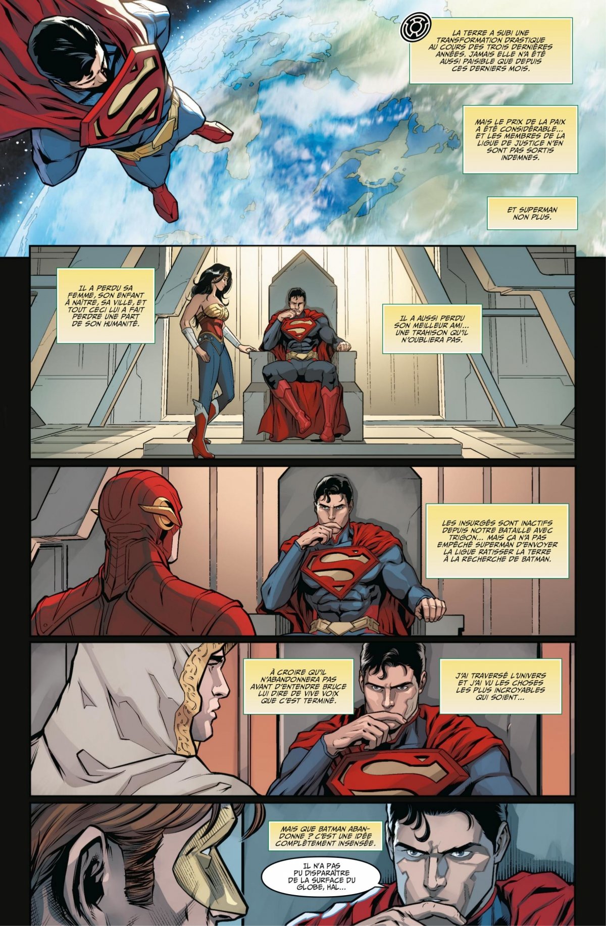 Les membres du groupe d’insurgés mené par Batman contre Superman entament leur quatrième année de résistance. Une rébellion à laquelle se rallient Zeus et son armée d’Amazones. Prise entre deux feux, Wonder Woman choisira-t-elle de s’opposer aux siens ? Comment le Chevalier Noir parviendra-t-il a tirer profit de cette intrusion divine ?Contient : Injustice Gods Among Us Year Four Vol.1 (Injustice Gods Among Us Year Four #1-7)