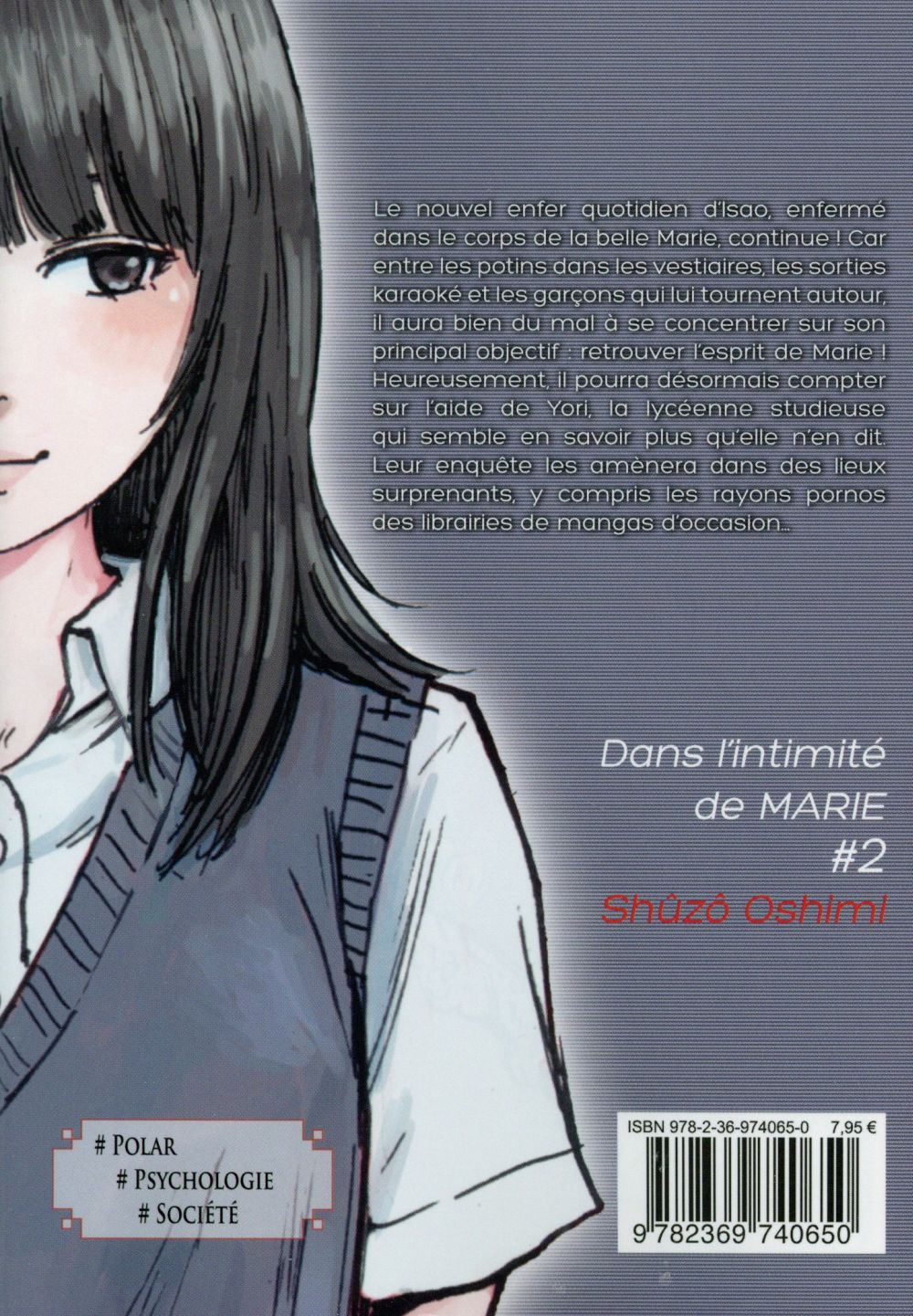 Le nouvel enfer quotidien d’Isao, enfermé dans le corps de la belle Marie, continue ! Car entre les potins dans les vestiaires, les sorties karaoké et les garçons qui lui tournent autour, il aura bien du mal à se concentrer sur son principal objectif : retrouver l’esprit de Marie ! Heureusement, il pourra désormais compter sur l’aide de Yôri, la lycéenne studieuse qui semble en savoir plus qu’elle n’en dit. Leur enquête les amènera dans des lieux surprenants, y compris les rayons pornos des librairies mangas d’occasion...
