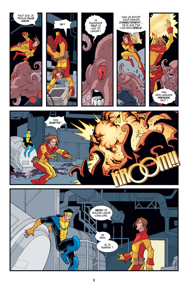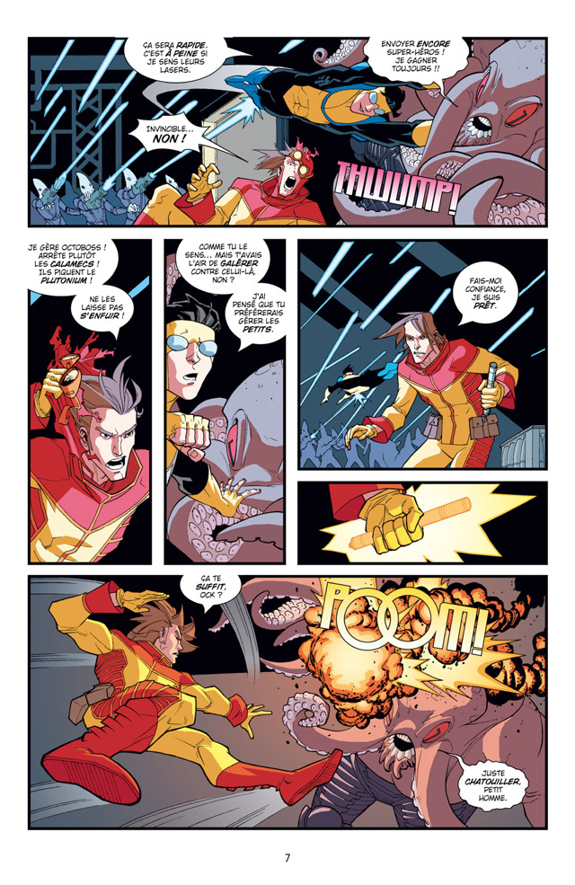 Contacté par l’émissaire d’un royaume extraterrestre menacé par l’invasion des guerriers viltrumites, Mark traverse la moitié de l’univers pour protéger le peuple opprimé. Il découvre sur place que le monarque n’est autre que son propre père, disparu depuis leur dernière confrontation... Mais les retrouvailles sont de courte durée car déjà l’avant-garde viltrumite passe à l’attaque !