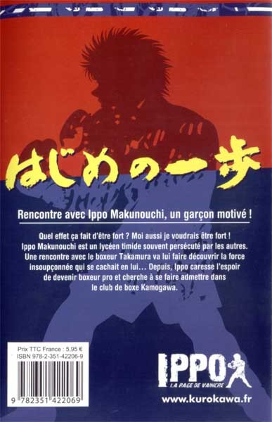 Ippo Makunouchi, lycéen timide, est habitué à subir les brimades des caïds de son école. Par ailleurs, le jeune homme, qui occupe tout son temps libre à venir en aide à sa mère, n’a guère le temps de se faire des amis. Mais il ne sait pas encore qu’un prestigieux destin l’attend ; alors qu’il se fait encore une fois martyriser par la bande d’Amezawa, Takamura, un grand boxeur japonais vient lui porter secours. Il se prend d’admiration pour son sauveur et ses aptitudes au combat. Aprés avoir visionné une K7 et passé le test de Takamura avec brio il entrera dans le club de boxe de Kamogawa. À la surprise général il tiendra tête a l’un des génies du club de boxe ce qui va attirer l’attention de l’entraîneur du club. Nous découvrirons dans cette aventure l’ascension du jeune IPPO jusqu’au plus haut niveau !