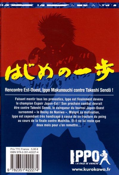 Ippo 11 est le volume 11 de la série Ippo par George Morikawa, paru en 2008. Selon nos informations, il n'en existe qu'une seule édition, publiée par Kurokawa.