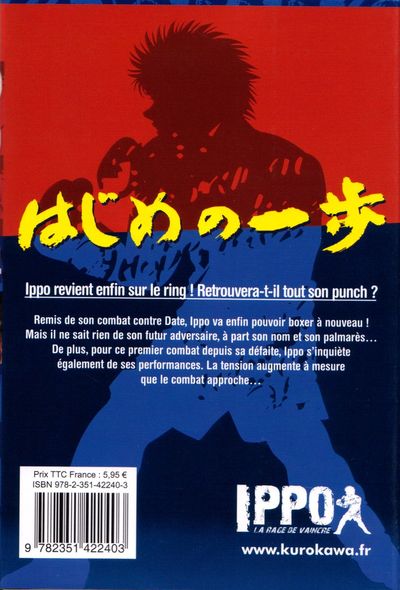 Ippo revient enfin sur le ring ! Retrouvera-t-il tout son punch ? Remis de son combat contre Date, Ippo va enfin pouvoir boxer à nouveau ! Mais il ne sait rien de son futur adversaire, à part son nom et son palmarès. De plus, pour ce premier combat depuis sa défaite, Ippo s’inquiète également de ses performances. La tension augmente à mesure que le combat approche