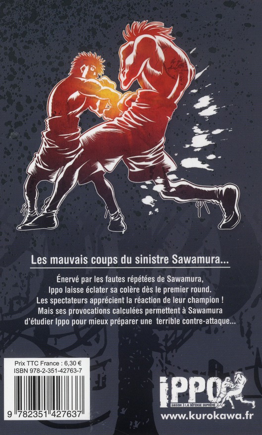 Enervé par les fautes répétées de Sawamura, Ippo laisse éclater sa colère dès le 1er round. Les spectateurs apprécient la réaction de leur champion ! Mais les provocations calculées de Sawamura lui permettent d’étudier Ippo pour mieux préparer sa contre attaque...