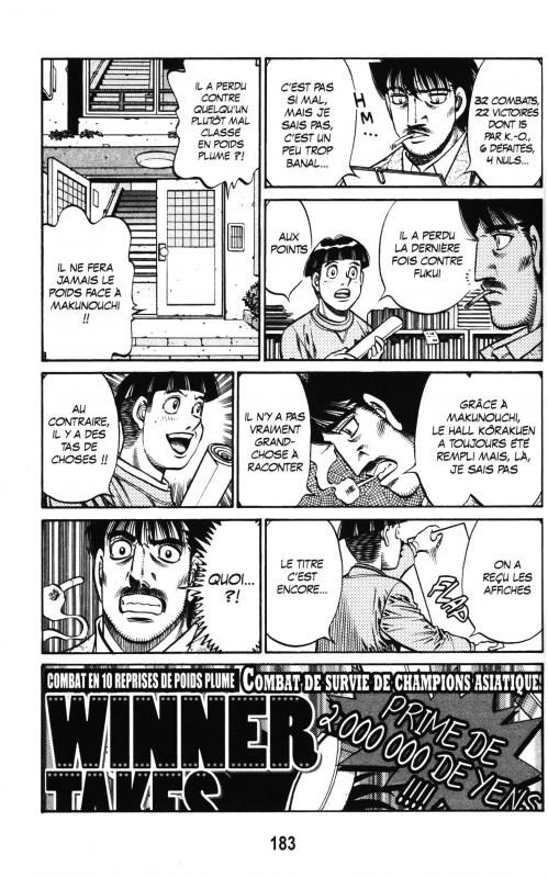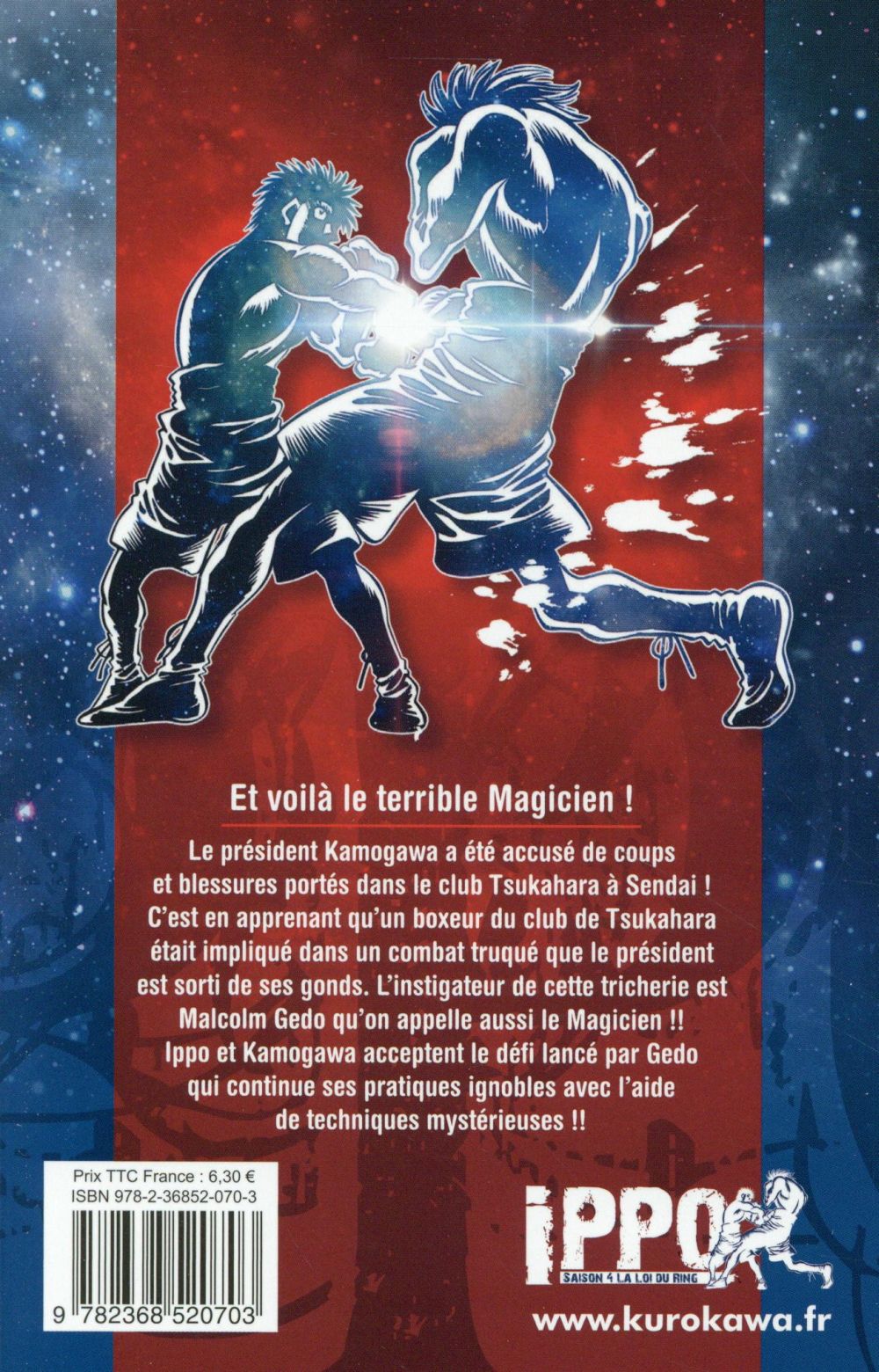 Le Président Kamogawa a été accusé de coups et blessures portés dans le club Tsukahara à Sendai ! C’est en apprenant qu’un boxeur du club de Tsukahara était impliqué dans un combat truqué que le Président est sorti de ses gonds. L’instigateur de cette tricherie est Malcolm Gedo qu’on appelle aussi le Magicien !! Ippo et Kamogawa acceptent le défi envoyé par Gedo qui continue ses pratiques ignobles avec l’aide des techniques mystérieuses !!