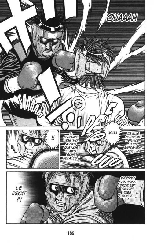 C’est la dernière ligne droite dans l’affrontement face à Gedo. Ippo retrouve l’appréciation des distances après avoir découvert le secret du tour de magie qui permettait à Gedo d’allonger son bras. Il se déchaîne alors contre Gedo et lui expédie un enchaînement aussi violent qu’un typhon !! Acculé, Gedo réveille en lui son instinct de boxeur et le combat devient enfin loyal !!