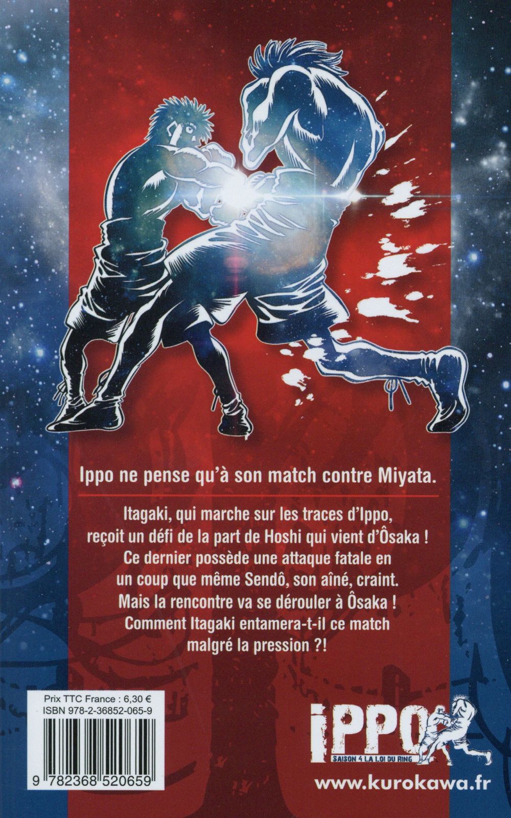 Ippo ne pense qu’à son match contre Miyata. Itagaki, qui marche sur les traces d’Ippo, reçoit un défi de la part de Hoshi qui vient d’Ôsaka ! Ce dernier possède une attaque fatale en un coup que même Sendô, son aîné, craint. Mais la rencontre va se dérouler à Ôsaka ! Comment Itagaki entamera-t-il ce match malgré la pression ! ?