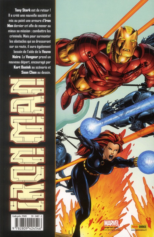 Tony Stark est de retour ! Il a créé une nouvelle société et mis au point une armure d’Iron Man dernier cri afin de mener au mieux sa mission : combattre les criminels. Mais pour surmonter les obstacles qui se dresseront sur sa route, il aura également besoin de l’aide de la Veuve Noire. Le Vengeur prend un nouveau départ, encouragé par Kurt Busiek au scénario et Sean Chan au dessin