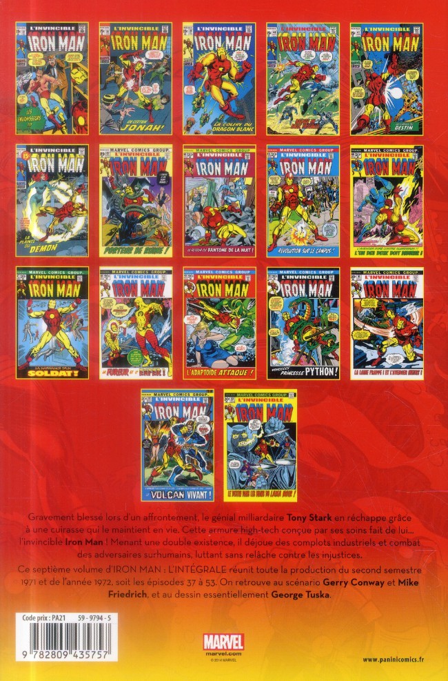 Septième intégrale consacrée aux aventures d’Iron Man. Découvrez des récits mythiques imaginés par Gerry Conway, Gary Friedrich, Roy Thomas et assistez au début de la prestation de Mike Friedrich