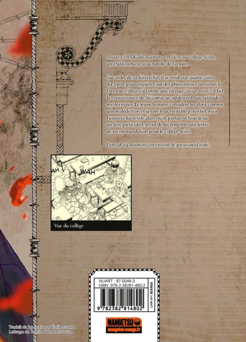 Sur ordre de sa hiérarchie, il se rend aux quatre coins du Japon pour enquêter sur des phénomènes surnaturels. Dans un village où tombe une étrange neige noire , il fait la connaissance de Shizuma, un adolescent aux aptitudes mystérieuses. Le jeune homme considère ses dons comme une malédiction et ignore leur véritable potentiel, mais Iwamoto lui révèle alors qu’ils partagent tous deux un lien particulier, avant de lui remettre une lettre de recommandation pour le collège Seihô.