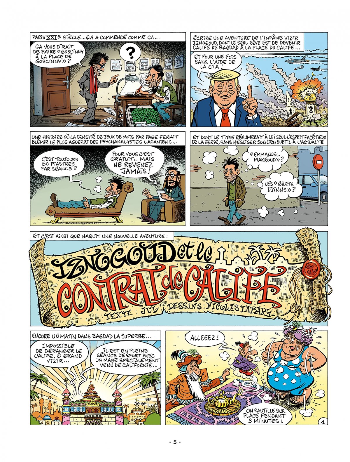 L’ignoble vizir Iznogoud revient dans une forme éblouissante, prêt à toutes les ignominies pour enfin, devenir calife à la place du calife ! N’hésitant pas à s’entourer de tout ce que Bagdad la somptueuse compte de mages interlopes, de charlatans véreux et d’hommes de main sans scrupules, il ne recule devant rien pour piéger le bon Haroun El-Poussah : de l’échiquier enchanté qui escamote le perdant de la partie, aux toiles magiques de Dali Baba, Iznogoud multiplie les stratagèmes tordus pour arriver à ses fins