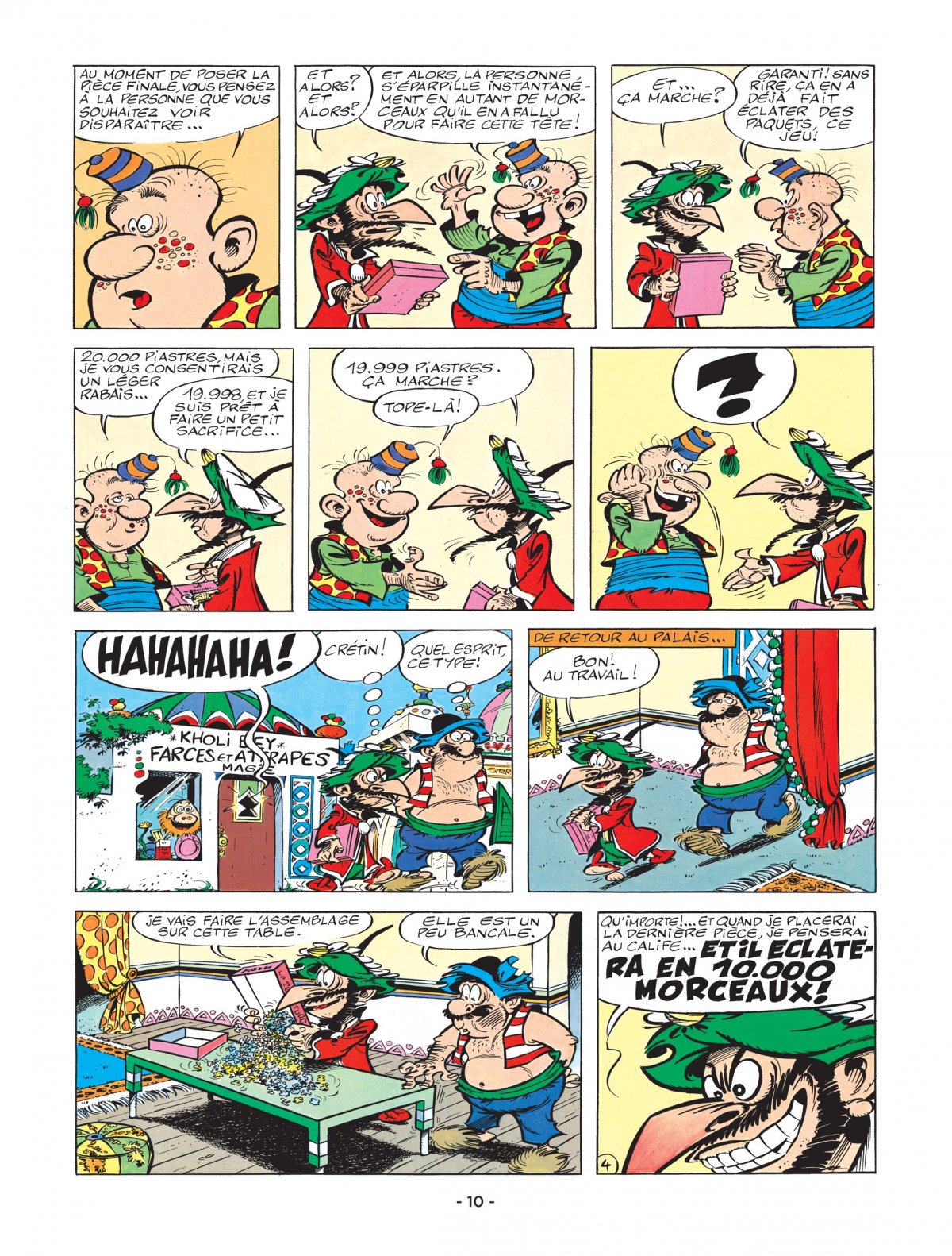 Une nouvelle boutique vient d’ouvrir à Badgad : « Kholi Bey – Farces et attrapes – Magie ». Iznogoud s’y précipite. « Aurais-tu quelque chose qui puisse m’aider à supprimer un gêneur ? ». Le vizir achète un puzzle magique… Au moment où l’on pose la dernière pièce, il suffit de penser au gêneur qui s’éparpille en 10 000 pièces. Iznogoud passe ses nuits et ses jours à refaire le puzzle car à chaque fois la dernière pièce a disparu…, jusqu’au jour ou le calife fait le puzzle jusqu’à la dernière pièce… « Tu vois, je pense toujours à toi » dit-il à Iznogoud.