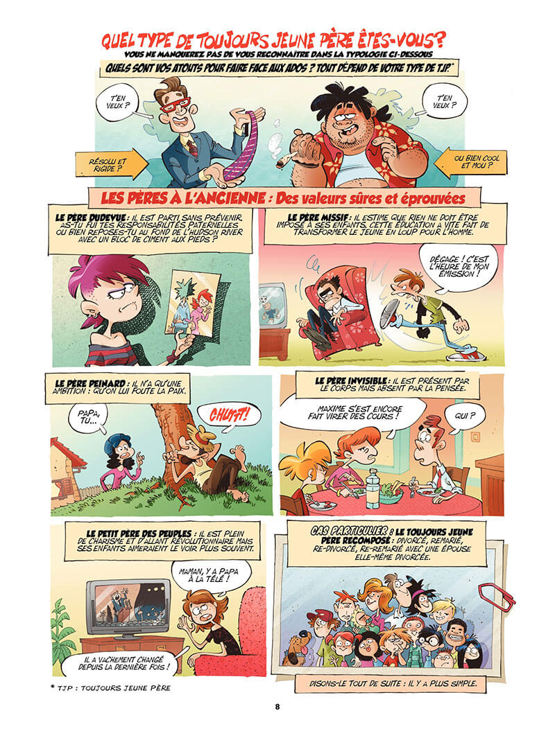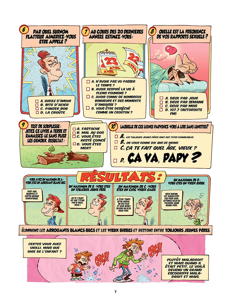 Voici la réponse à vos angoisses, une adaptation BD du livre Guide du toujours jeune père, d’Antilogus et Festjens, suite du Guide du jeune père, immense succès en livre à la base de la fameuse collection de guides en BD de Jacky Goupil aux éditions Vents d’ouest.