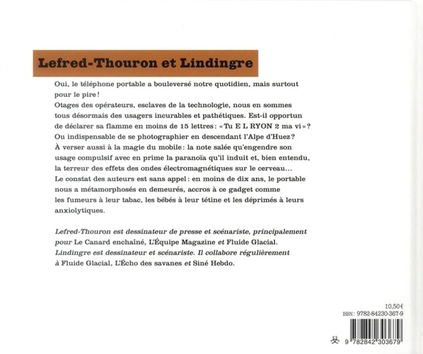 Oui, le téléphone portable a bouleversé notre quotidien, mais surtout pour le pire ! Otages des opérateurs, esclaves de la technologie, nous en sommes tous désormais des usagers incurables et pathétiques. Est-il opportun de déclarer sa flamme en moins de 15 lettres : " Tu E L RYON 2 ma vi " ? Ou indispensable de se photographier en descendant l’Alpe d’Huez ? À verser aussi à la magie du mobile : la note salée qu’engendre son usage compulsif avec en prime la paranoïa qu’il induit et, bien entendu, la terreur des effets des ondes électromagnétiques sur le cerveau... Le constat des auteurs est sans appel : en moins de dix ans, le portable nous a métamorphosés en demeurés, accros à ce gadget comme les fumeurs à leur tabac, les bébés à leur tétine et les déprimés à leurs anxiolytiques.
