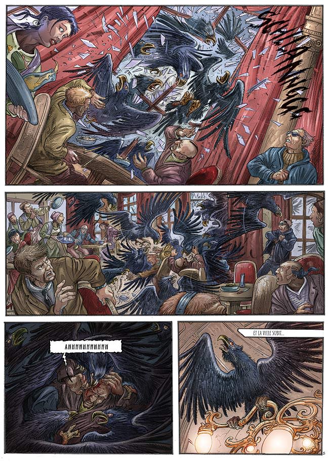 Le commandeur, qui déjeune dans un hôtel de la ville, est attaqué par des centaines de rapaces noirs que semble commander un mystérieux convive. Jida Lenj est devenu l’empereur Jida et représente les trois races : Reclus, Amazones, Sphère. Cet album, qui entame un nouveau cycle, débute par huit pages de croquis inédits.