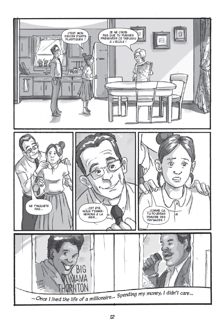 Sous le crayon de Giulia Argnani, cet album en noir et blanc, nous trace le portrait d’une femme et d’une chanteuse/musicienne dont le destin flamboyant rencontra l’histoire américaine des années cinquante et soixante : féminisme, mouvement gay, lutte pour les droits civiques, hédonisme hippie et excès en tous genres…