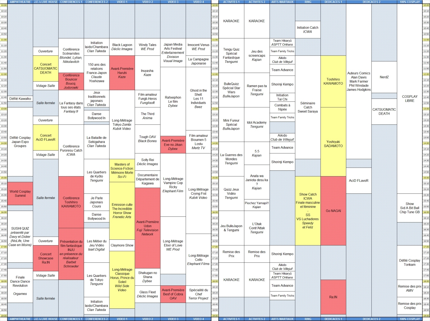 Voici le planning heure par heure, et lieu par lieu, de chacune des animations officielles de Japan Expo 2008 pour le dimanche 6 juillet 2008.