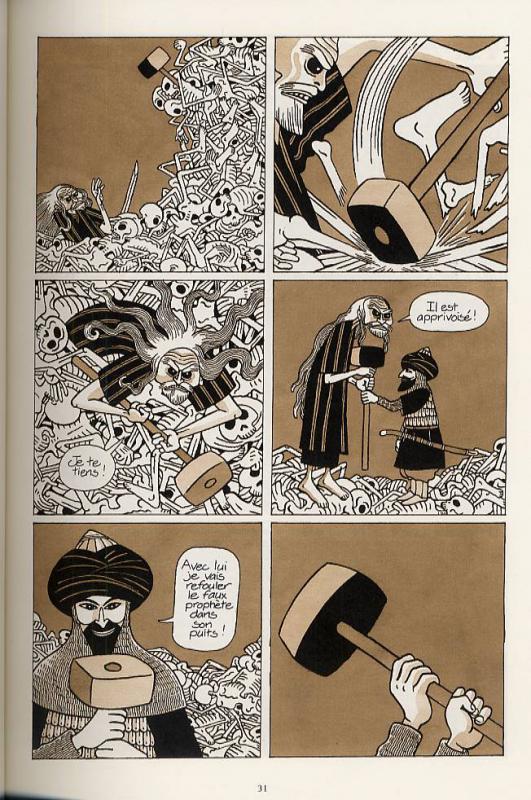 Il était un temps où l’on s’étripait au nom de Dieu.Il était un temps où le chemin du Paradis s’offrait aux Hommes.Il était un temps où le travail était un crime.Des temps troubles et héroïques qui ont trouvé leur parfait conteur, un héraut à leur démesure.David B, ce créateur unique revient avec un recueil de trois récits gorgés de sang, emplis de fureur, Le Jardin armé.Le Jardin armé, suivi du Prophète voilé, et du Tambour amoureux, trois récits fantastiques et poétiques où se mêlent et s’entremêlent mythes, légendes et grande Histoire.Trois contes sombres et envoûtants que seul David B pouvait amener à cette rare qualité, à cette belle sonorité.Dieu permet tous les crimes.Rohan, forgeron à Prague au XVe siècle, est un jour appelé par Adam, père de l’Humanité, à quitter la Terre pour rejoindre le Paradis. Pour y parvenir, il faut pénétrer Eve, car c’est en elle que se trouve le chemin du jardin d’Eden. Rohan appelle ses fidèles à le suivre. Naît ainsi la troupe des Adamites.Face à eux, les taborites, menés par Ziska, cherchent aussi la route du paradis. La guerre peut commencer.L’humanité se réduit à néant, chaque jour un peu plus. Les hommes fuient pour échapper à la misère mais ils ne font que reproduire le seul schéma qu’ils connaissent : violence, souffrances, tortures...Cette quête du paradis n’est qu’une succession de meurtres. L’amour du pouvoir n’a pas de limites. Ziska sort victorieux de cette guerre, en tuant son ennemi.Mais que lui reste-t-il ? De la poussière, des arbres coupés et le squelette de l’Humanité jonchant le sol.Il ne reste plus rien, il faut donc partir à nouveau, vers la mort et l’amour, qui le sauveront peut être.Le Prophète voiléC’était au temps d’Hâroûn Al-Rashid, le calife des Mille et une nuits.Hakim Al-Muquanna exerçait le métier impur de teinturier.Un jour, une forme blanche apparut dans le ciel. C’était une pièce de tissu. Elle vint se coller sur le visage d’Hakim. Il essaya, en vain, de l’arracher. Quelqu’un reconnut parmi les plis du voile, le visage d’Abu-Muslim, le défenseur des opprimés, assassiné un siècle plus tôt.Un an plus tard, Hakim Al-Muquanna, devenu le « prophète voilé », avait créé son royaume et vaincu sept armées envoyées contre lui.