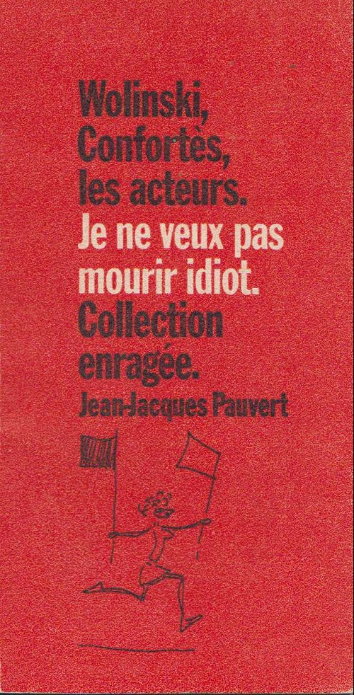 Cette pièce, écrite à partir des dessins de Wolinski dans L’Enragé, donna, avec la mise en scène de Claude Confortès, un spectacle corrosif, digne héritier théâtral de l’esprit de Mai 68. Sous la plume acérée de Wolinski, Je ne veux pas mourir idiot recense les idées contestataires de cette époque et le combat contre les tenants de l’ordre moral. Les mots ne vieillissent pas quand ils font l’amour.