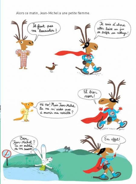 Panique au pays des petits poneys ! Le Grand Matou a pris le pouvoir et instaure une terrible dictature. La Poponie est en train de devenir un poney-club strict où tous les habitants doivent, entre autres, avoir la même couleur de crinière... Heureusement, Jean-Michel le caribou débarque à leur rescousse pour faire la révolution ! Les aventures du super-héros imaginé par Magali Le Huche continuent en bande dessinée avant d’occuper bientôt les écrans. Fous rires garantis