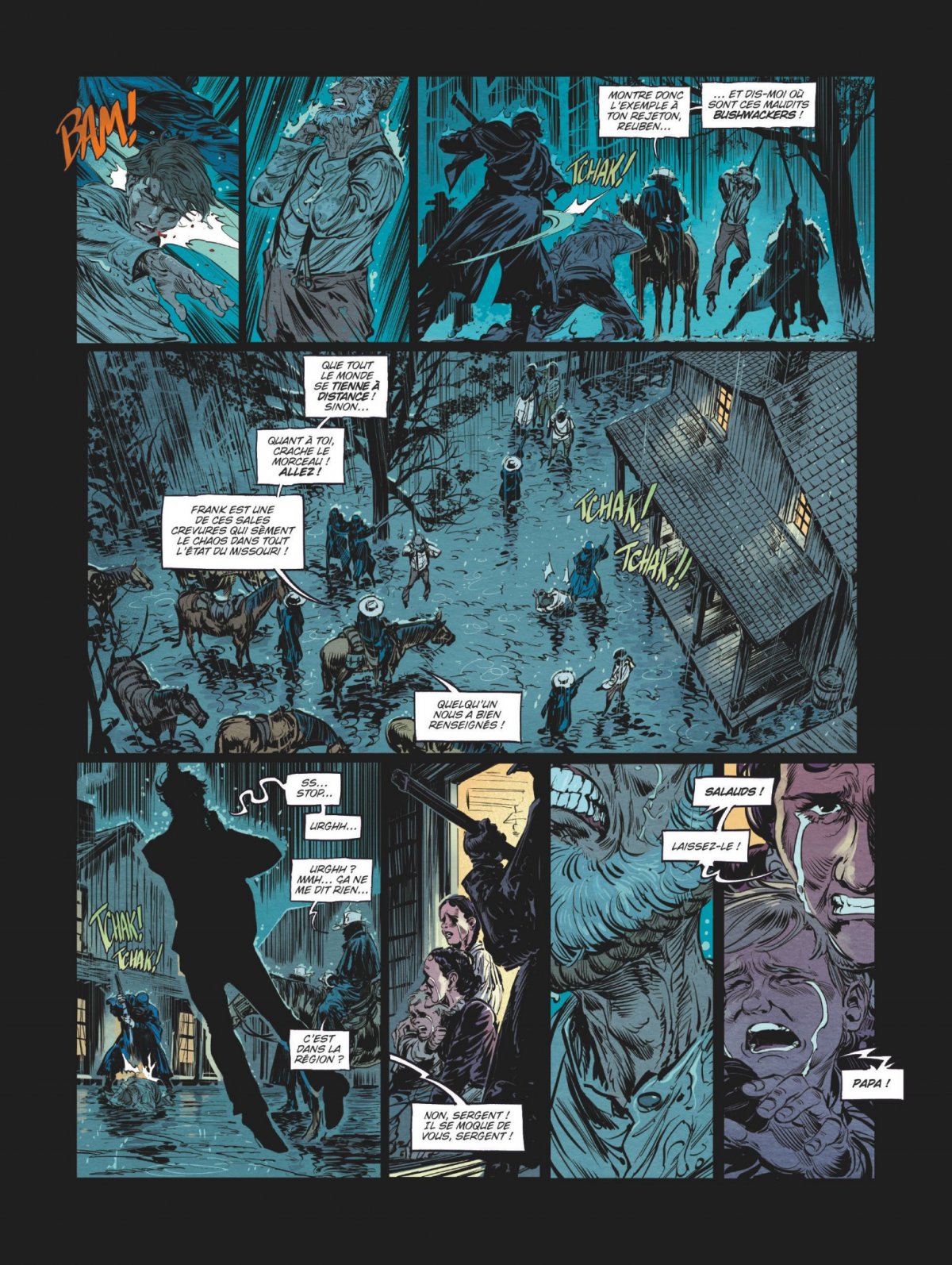 Missouri, 1863. En pleine guerre de Sécession, la ferme des James est saccagée par une patrouille nordiste. Leur brutalité marque au fer rouge le jeune Jesse, qui n’aspire plus qu’à se venger ! Fervent partisan de la cause du Sud, il rejoint les Bushwackers de « Bloody Bill » Anderson dans leur guérilla meurtrière, apprenant à piller, voler et tuer sous couvert d’une morale viciée par le traumatisme de la guerre civile. Au rétablissement de la paix, la rancoeur, le sentiment d’injustice et l’humiliation de la défaite le précipitent dans une carrière criminelle. Dans une surenchère de la violence, les quinze années qui suivent voient s’enchaîner les braquages de banques, les attaques de trains et de diligences, les règlements de comptes et les chevauchées sauvages... Jesse, son frère Frank et leur gang sont devenus les ennemis publics numéro un d’un pays qui peine à panser ses blessures, une partie de l’opinion sudiste voyant en lui un héros populaire, une sorte de justicier au grand coeur s’en prenant aux nantis pour venger l’honneur des vaincus.