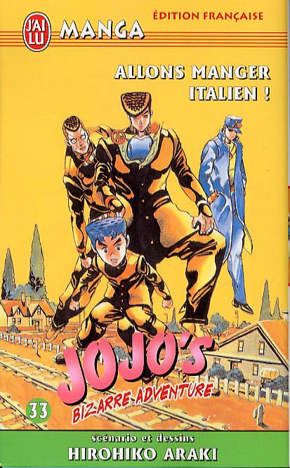 Allons manger italien est le volume 33 de la série Jojo’s Bizarre Adventure par Hirohiko Araki, paru en 2004. Selon nos informations, il n'en existe qu'une seule édition, publiée par J’ai Lu.