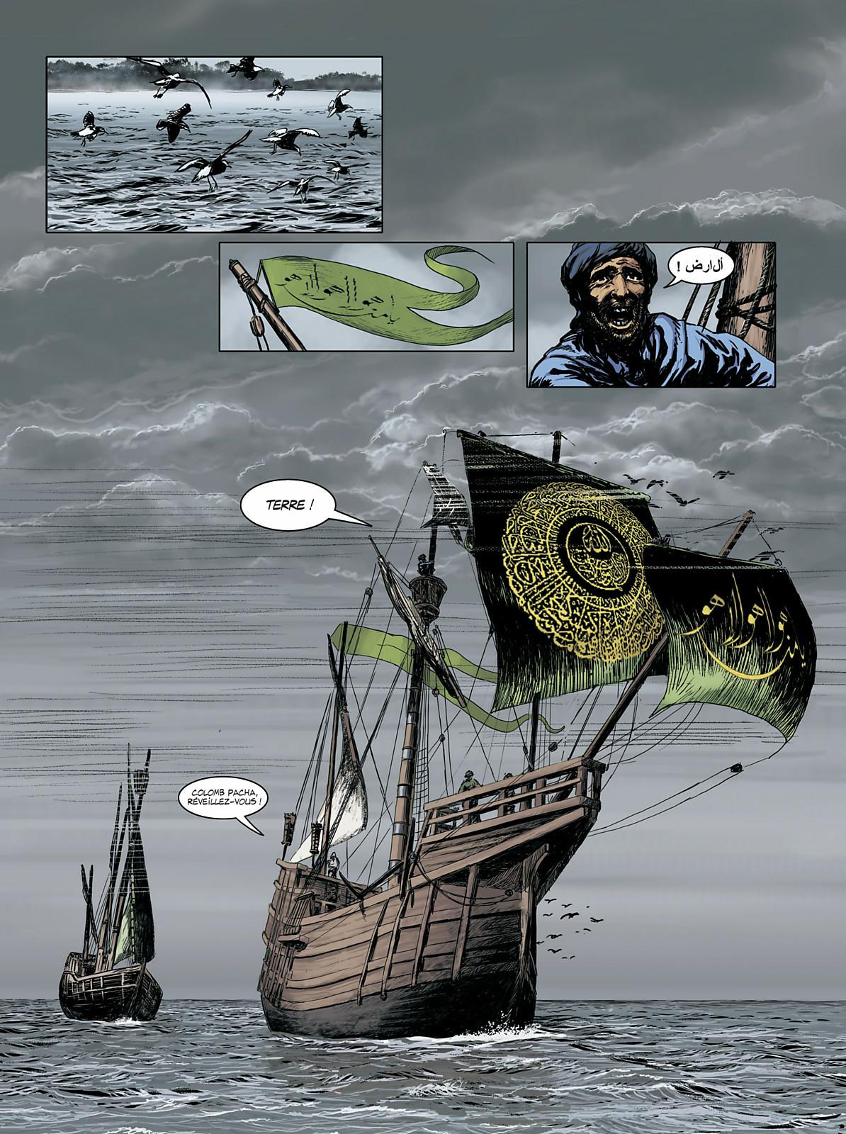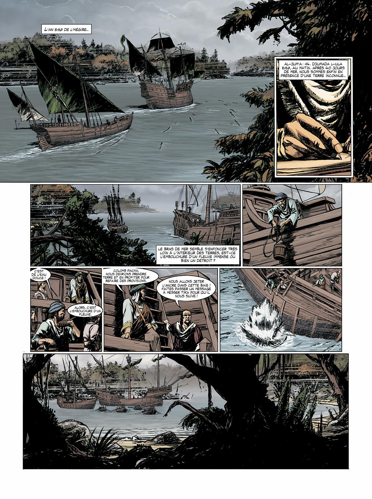 1492. Pour les besoins de son expédition, le marin génois Colomb se convertit à l’Islam et s’associe à un consortium de marchands juifs, musulmans et chrétiens. Au bout d’un mois de mer, et de conflits exacerbés, la flottille aborde une terre inconnue. Tous s’accordent en pensant avoir découvert le paradis terrestre, comme les Saintes Écritures le laissent entendre. Mais des démons semblent hanter ce Nouveau Monde...