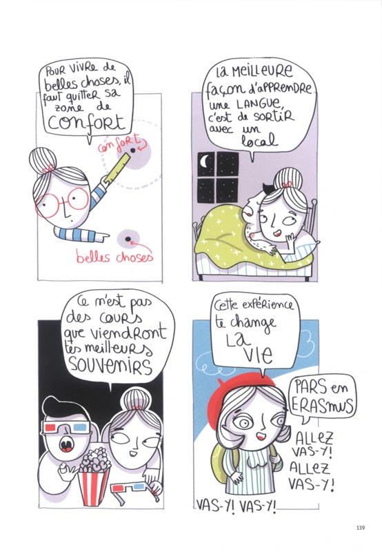 Avec humour et nostalgie, l’illustratrice Amaia Azzazola et la journaliste Raquel Piñeiro racontent toutes les expériences inoubliables d’un séjour Erasmus : tenir une conversation dans trois langues à la fois, avoir une vie sociale digne d’un DJ d’Ibiza, organiser des dîners thématiques aux allures de sommets onusiens, assister à des déclarations éphémères d’amour éternel. sans oublier les week-ends marathons, les rencontres improbables et la nostalgie du retour au bercail