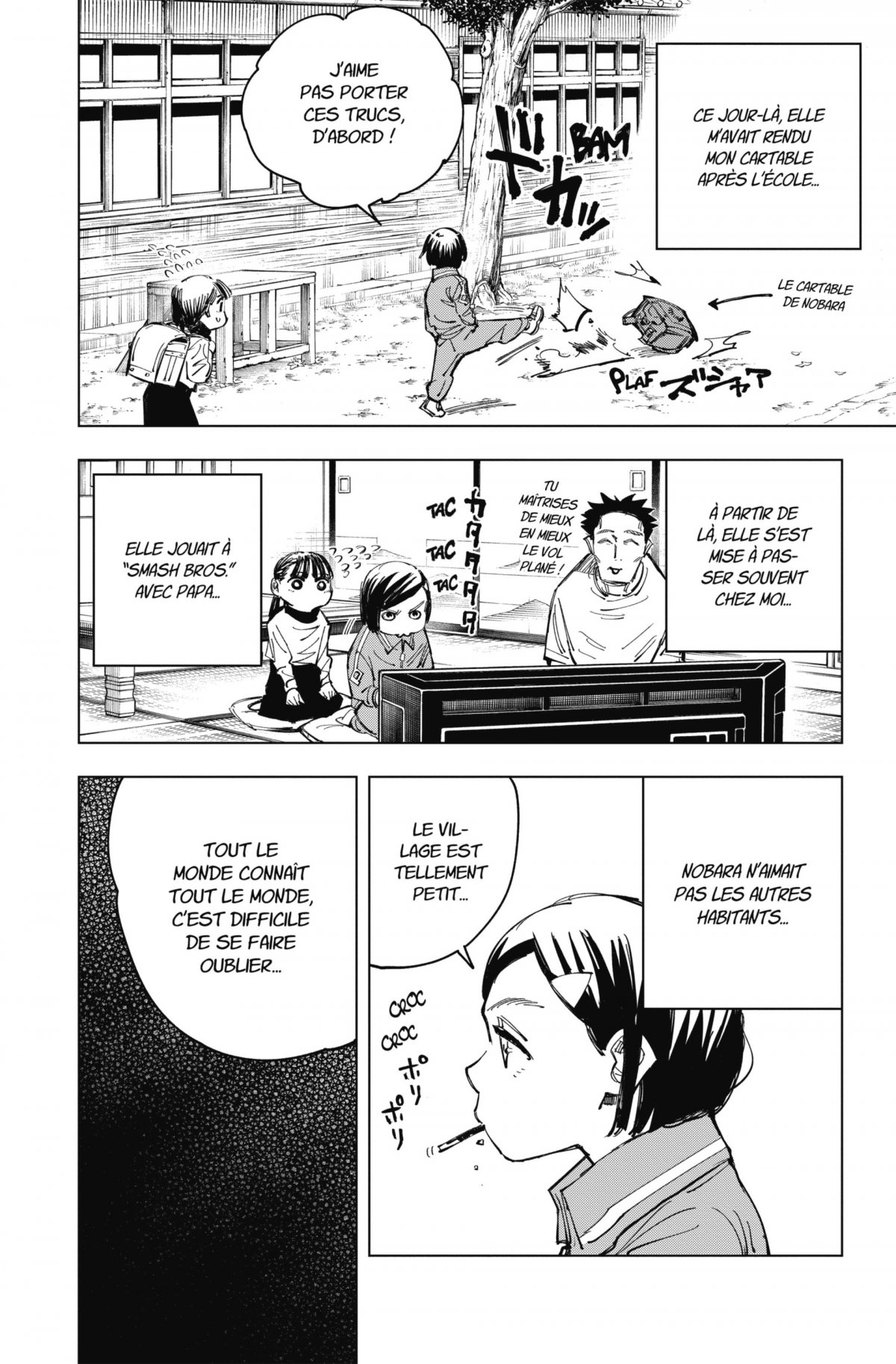 Mais le fléau, qui s’était auparavant dédoublé, livre également un autre combat contre Nobara ! Au moment où la jeune fille croit avoir pris le dessus grâce à sa résonance, son adversaire parvient à s’approcher d’elle, sous les yeux terrifiés de Yuji...