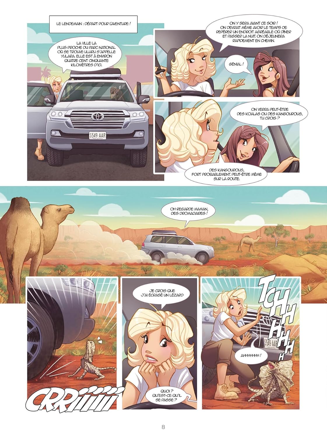 Juliette et sa mère partent pour l’Australie. Là-bas, elles s’émerveillent de tout : la beauté sauvage des paysages, la diversité de la faune et l’étonnante culture aborigène. Mais un environnement aussi sublime peut également s’avérer hostile. Nos héroïnes l’apprennent à leurs dépens lors d’une excursion dans l’outback. L’apparition de deux inconnus, Emmanuel et son fils adolescent, Adrien, ajoute encore plus d’imprévu à leur périple !