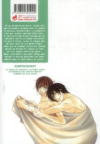 Ce qui devait arriver arrive : Misaki finit par reconnaître sa liaison avec le célèbre et sulfureux Akihiko Usami ! Le problème, c’est que certains sont loin d’être ravis... À commencer par le père d’Usagi, qui les considère comme un couple mal assorti et voué à l’échec, ce qui ne manque pas de faire sortir de ses gonds Misaki ! Alors que la situation s’envenime, Akihiko décide de prendre les choses en mains. Au sens propre comme au figuré..