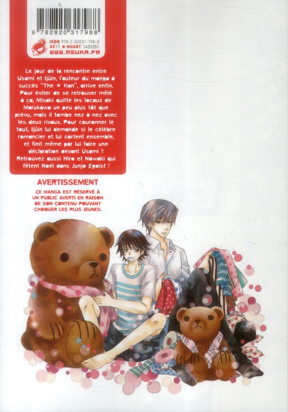 Le jour de la rencontre entre Usami et Ijûin, l’auteur du manga à succès "The ☆ Kan", arrive enfin. Pour éviter de se retrouver mêlé à ça, Misaki quitte les locaux de Marukawa un peu plus tôt que prévu, mais il tombe nez à nez avec les deux rivaux. Pour couronner le tout, Ijûin lui demande si le célèbre romancier et lui sortent ensemble, et finit même par lui faire une déclaration devant Usami !! Retrouvez aussi Hiro et Nowaki qui fêtent Noël dans Junjo Egoist !
