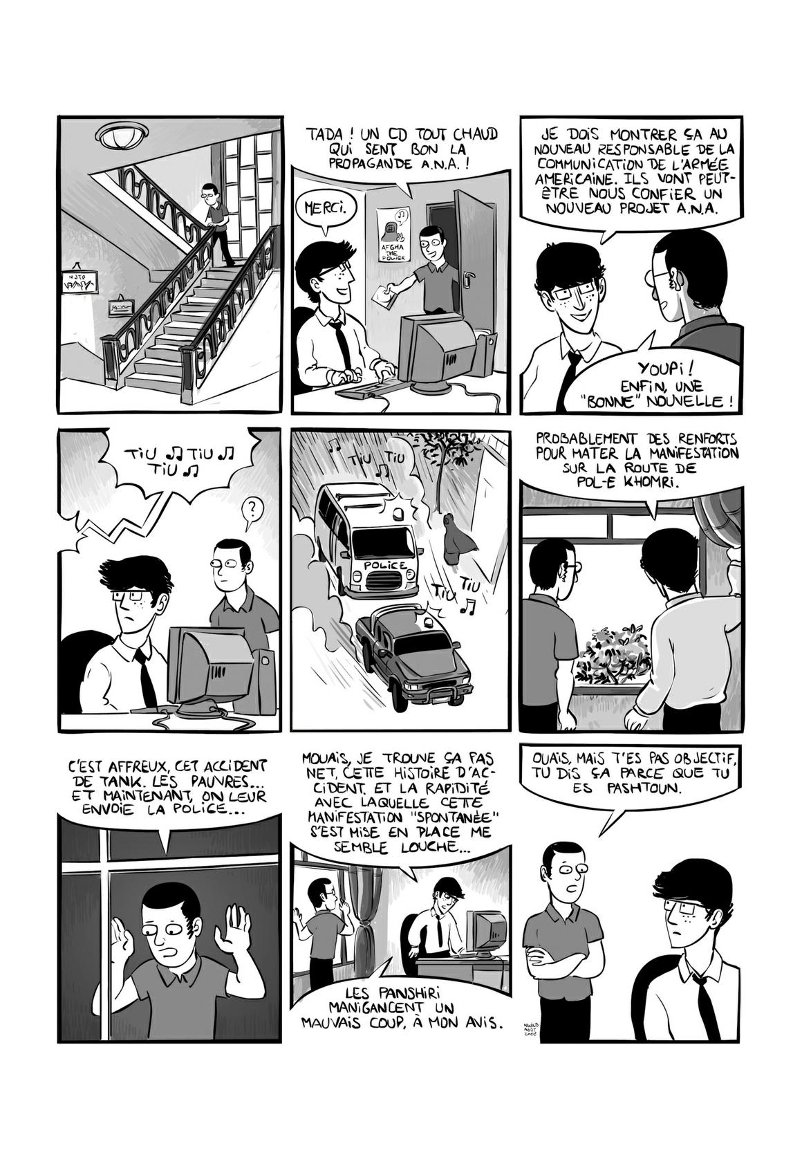 Devenu seul auteur de BD (son collègue est parti) d’un pays auquel il s’attache de plus en plus, Nicolas continue de mener sa drôle d’existence d’expatrié dans un Kaboul moins pacifié qu’on ne pourrait l’espérer