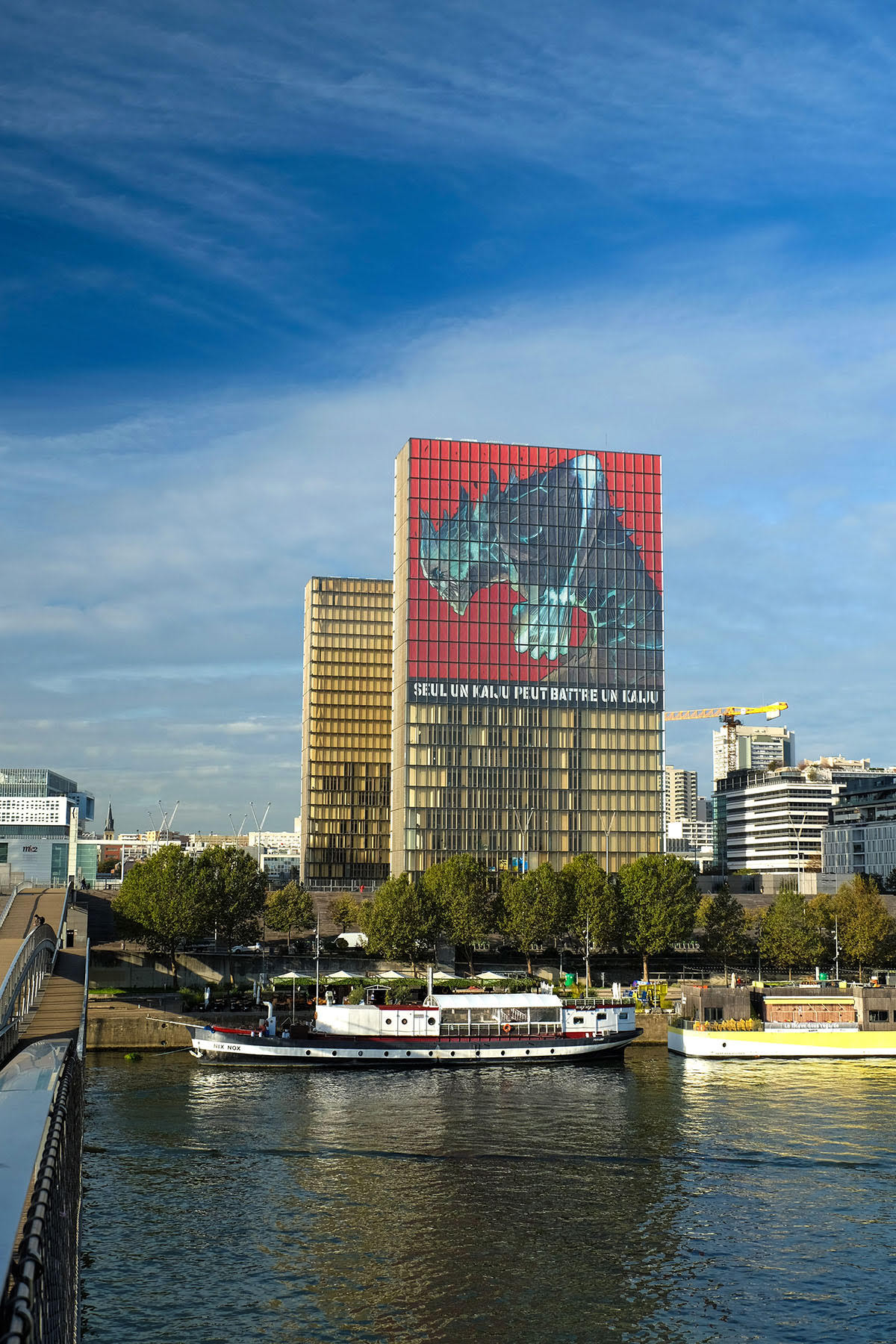 À l’occasion de la sortie du manga KAIJU N°8, en librairie depuis le 6 octobre, l’équipe de Kazé Manga a initié un dispositif de lancement exceptionnel : corner dédié à la FNAC Montparnasse, marque-pages offerts dans de nombreuses enseignes et librairies indépendantes, mais surtout un affichage visible sur l’une des tours de la Bibliothèque nationale de France à Paris !