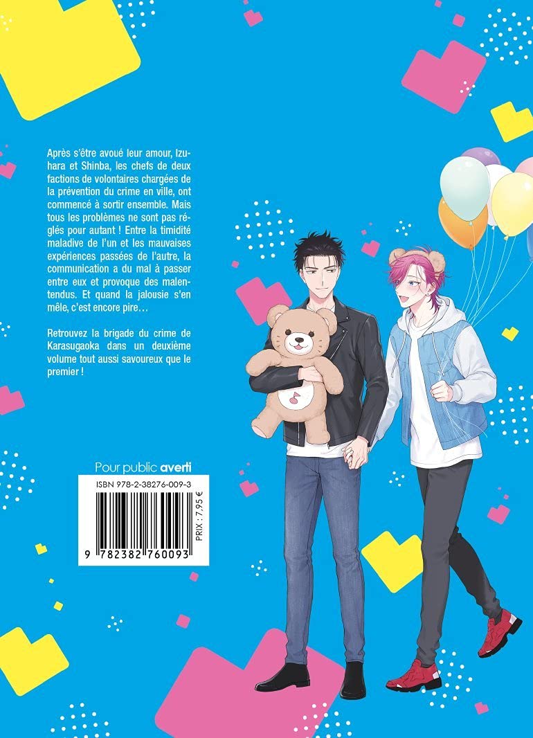 Après s’être avoué leur amour, Izuhara et Shinba, les chefs de deux factions de volontaires chargées de la prévention du crime en ville, ont commencé à sortir ensemble. Mais tous les problèmes ne sont pas réglés pour autant ! Entre la timidité maladive de l’un et les mauvaises expériences passées de l’autre, la communication a du mal à passer entre eux et provoque des malentendus. Et quand la jalousie s’en mêle, c’est encore pire...Retrouvez la brigade du crime de Karasugaoka dans un deuxième volume tout aussi savoureux que le premier !