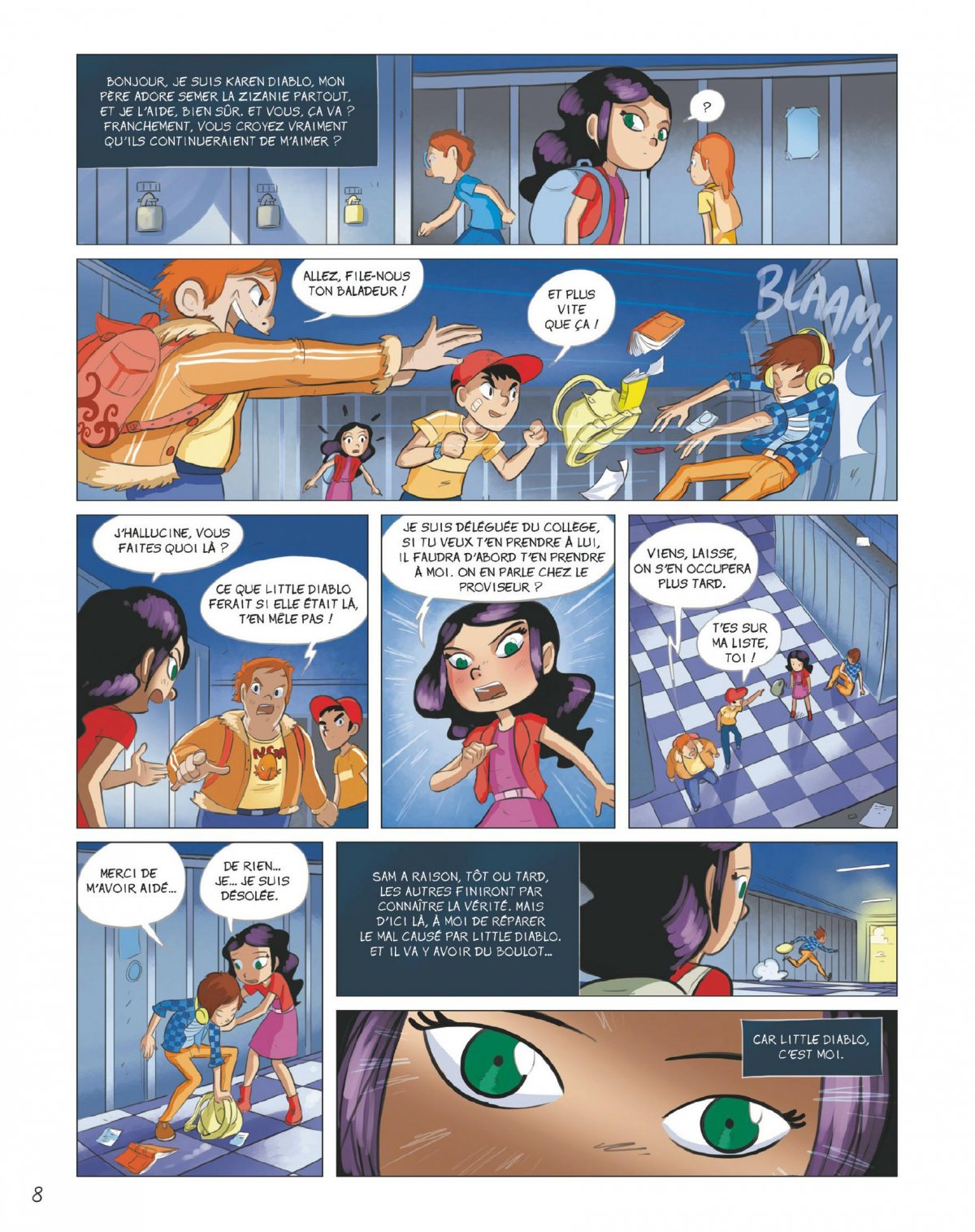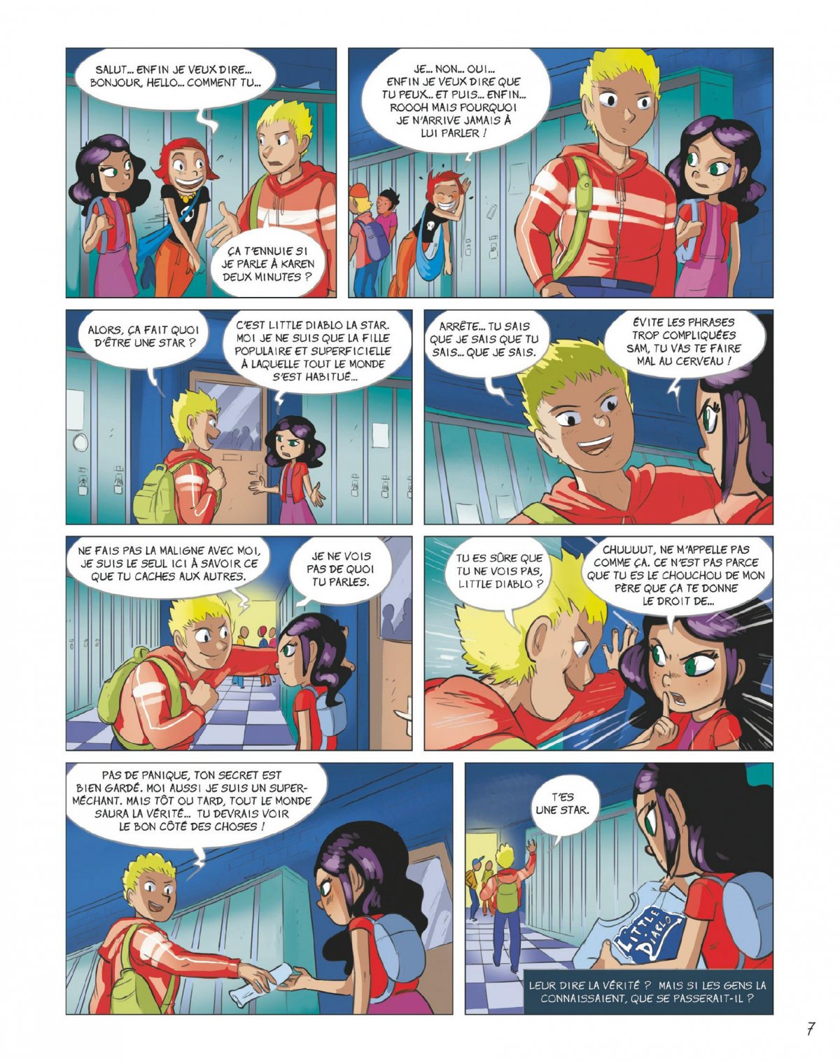 Karen pourrait être une collégienne comme les autres. Après tout, elle a une meilleure amie, Cybèle, un amoureux-qui-nele- sait-pas, Kevin, un lourdaud qui lui tourne autour, Sam. Sauf que Karen est la fille du professeur Diablo, l’inventeur de machines machiavéliques destinées à asservir les gens et, surtout, à anéantir la famille Super, les super-héros qui protègent la ville...