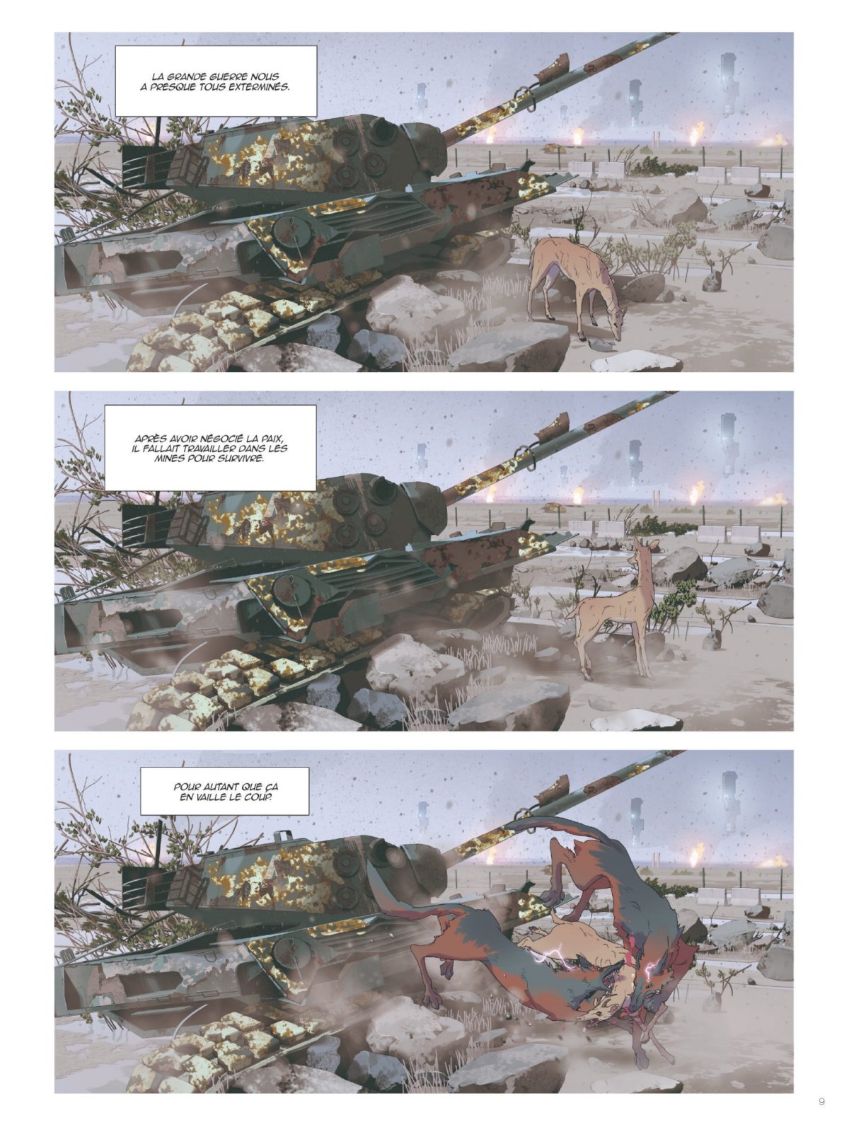 Mais alors que Rio prend en chasse un innocent louveteau pour se nourrir, il est attaqué par sa mère, une louve mutante à l’aspect féroce ! Après avoir pris la fuite, Kaya tombe dans un piège où elle retrouve la mère du louveteau, elle-même prisonnière. Ces deux êtres n’ont plus d’autres choix que de s’entraider pour s’échapper. Désormais cette louve géante ne quittera plus la petite fille. C’est le début d’une longue marche à travers les ruines, durant laquelle Kaya va apprendre à côtoyer cet étrange animal qui semble l’avoir choisie, pour une raison qu’elle ignore.