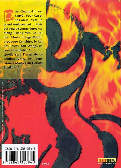 Pan Guang-Lin est sauvé ! Pour Ken et ses amis, c’est un grand soulagement. Mais qui sera de courte durée car Mang Kuang-Yun, le roi des morts (Ling-Wang), provoque Kenshiro, le roi des enfers (Yan-Wang), en combat singulier ! Quelle sera l’issue de ce combat entre les deux grands maîtres du hokuto Shinken ?