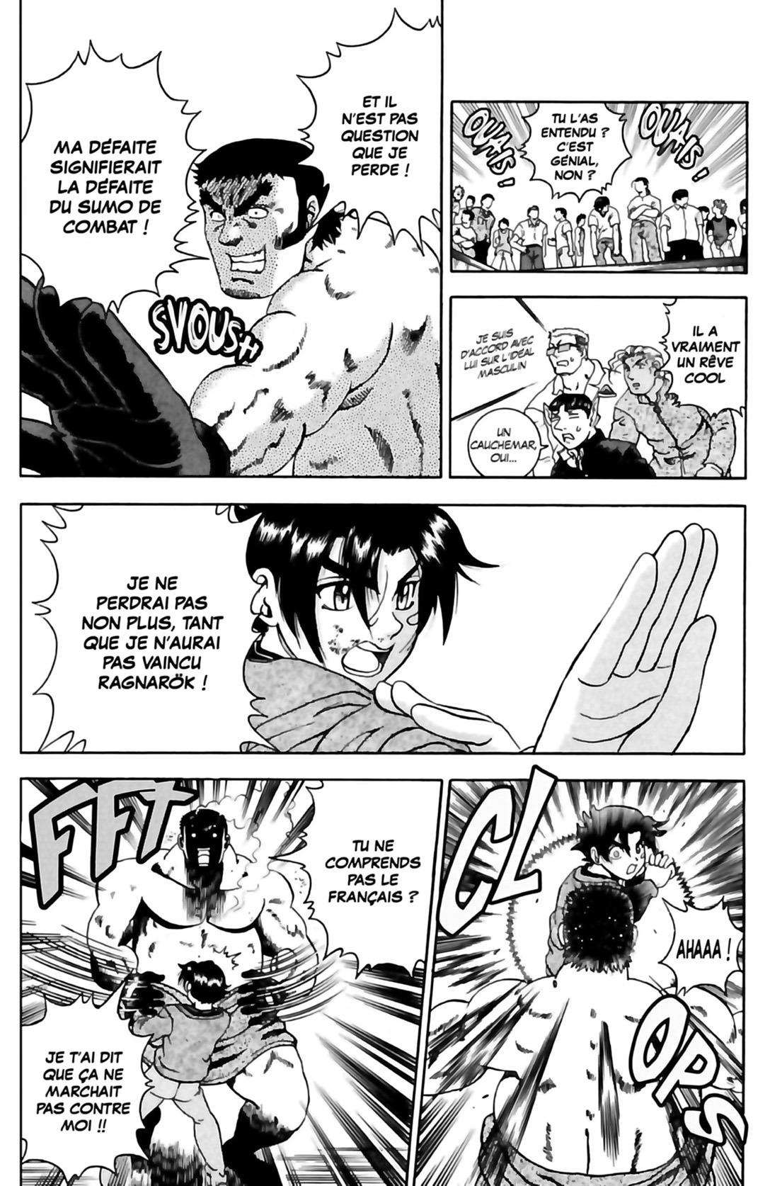 Les membres de Ragnarök ont tendu un piège à Ken Ichi et celui-ci se voit contraint d’affronter le Septième champion, un spécialiste du Sumô. Pendant ce temps, un autre champion de Ragnarök a choisi son nouvel adversaire et il s’agit de la jeune Miu. En prime un récit racontant les origines de la rencontre entre le le Grand Maître Hayato Fûrinji et Apachai. Un volume bourré de révélations et à ne pas manquer !
