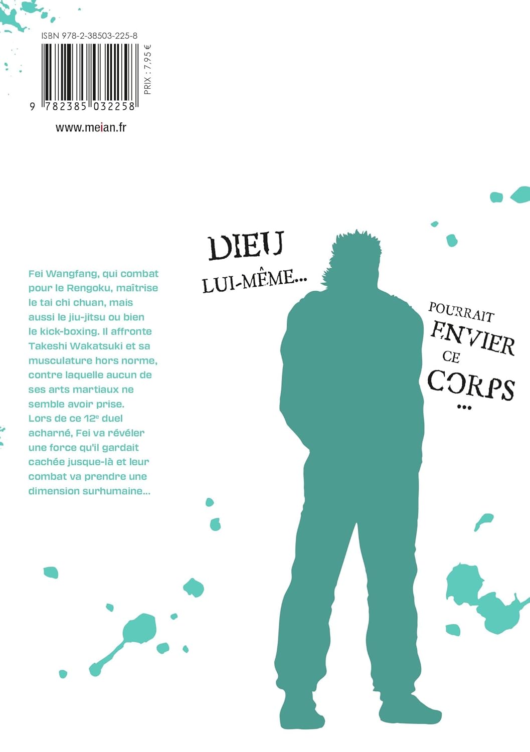 Fei Wangfang, qui combat pour le Rengoku, maîtrise le tai chi chuan, mais aussi le jiu-jitsu ou bien le kick-boxing. Il affronte Takeshi Wakatsuki et sa musculature hors norme, contre laquelle aucun de ses arts martiaux ne semble avoir prise. Lors de ce 12e duel acharné, Fei va révéler une force qu’il gardait cachée jusque-là et leur combat va prendre une dimension surhumaine...