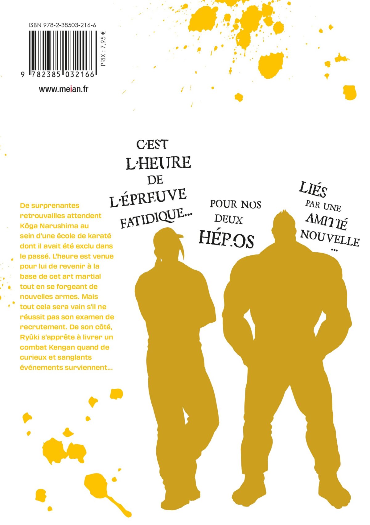 De surprenantes retrouvailles attendent Kôga Narushima au sein d’une école de karaté dont il avait été exclu dans le passé. L’heure est venue pour lui de revenir à la base de cet art martial tout en se forgeant de nouvelles armes. Mais tout cela sera vain s’il ne réussit pas son examen de recrutement. De son côté, Ryûki s’apprête à livrer un combat Kengan quand de curieux et sanglants événements surviennent...