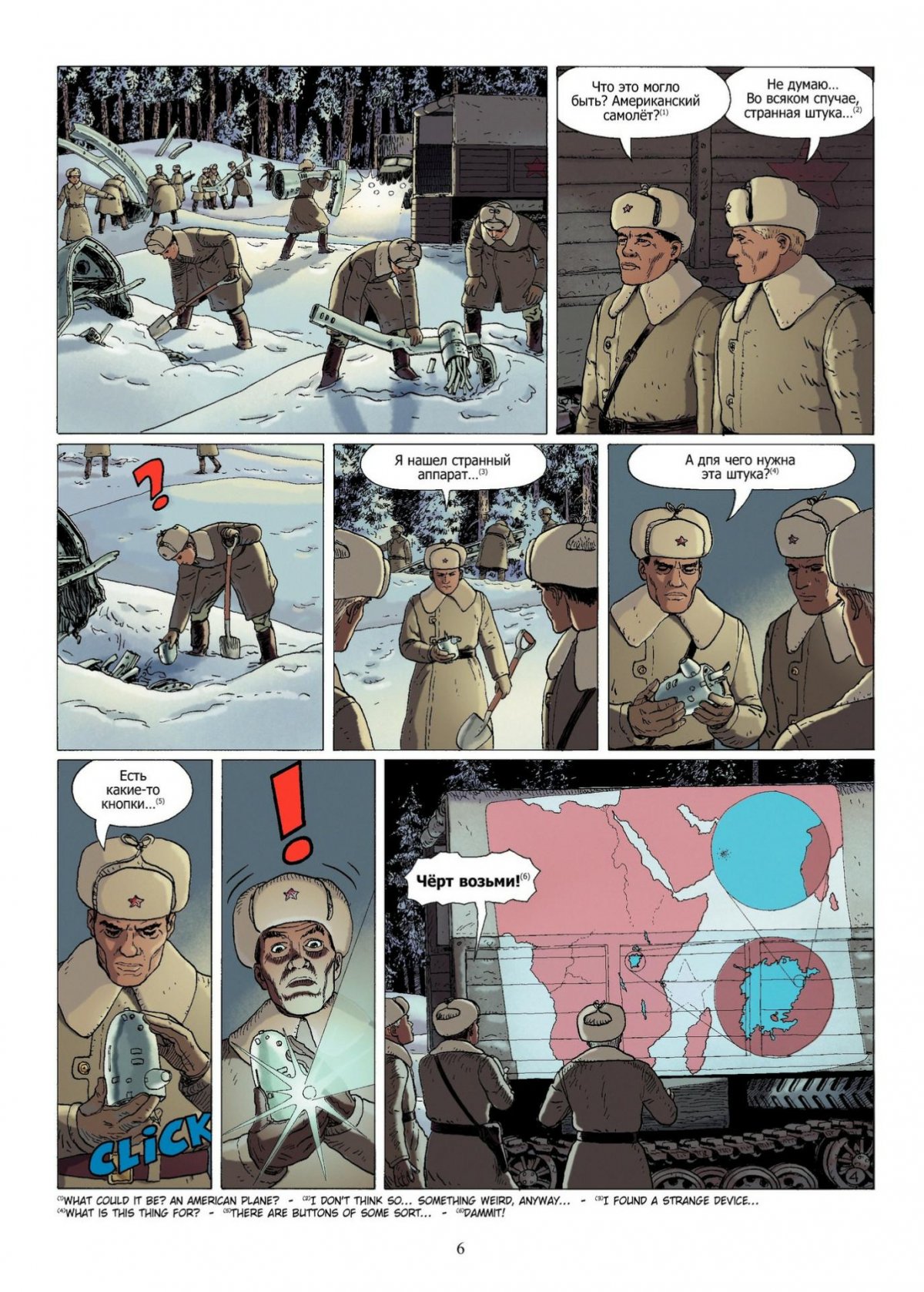 Le dénouement incroyable du précédent épisode laisse croire qu’une civilisation extra-terrestre est réapparue sur Terre dans la région du Kilimandjaro. C’est plus exactement dans la zone du lac Victoria que Remington et Miss Austin concentrent leurs recherches... Mais ils ne sont plus seuls et les Russes les premiers s’empressent de mener leurs propres fouilles. Il s’agit de l’avant-dernier tome de cette histoire passionnante signée Leo et Rodolphe.
