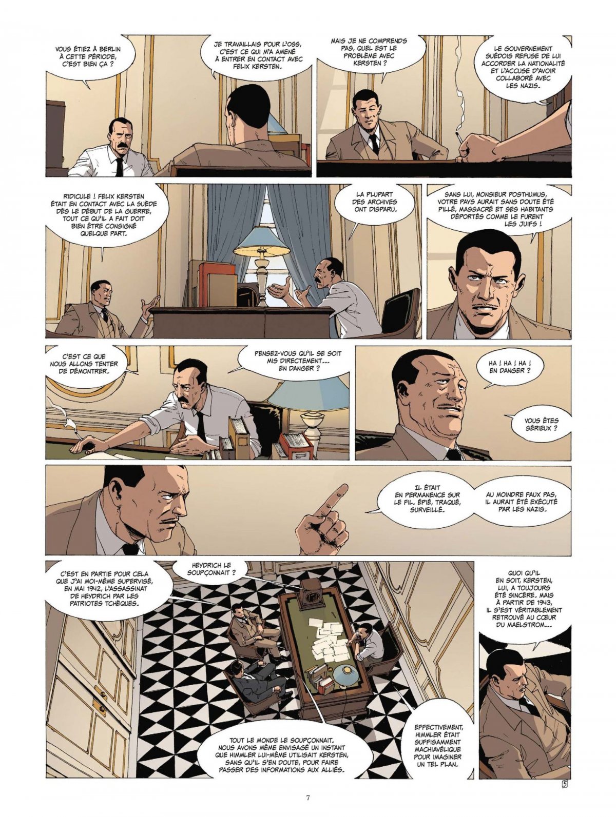 Le 4 juin 1942, Reinhard Heydrich, adjoint de Himmler, est assassiné à Prague par des miliciens tchèques. Enfin débarrassé de celui qui se méfiait le plus de lui, le docteur Félix Kersten croit pouvoir enfin mener à bien sa périlleuse mission auprès de Himmler et monnayer des vies en échange de soins. Mais le remplaçant d’Heydrich va s’avérer être un ennemi encore plus dangereux et sournois... Constamment surveillé, épié, Kersten s’adonne à un véritable numéro d’équilibriste entre son marchandage au chevet de Himmler et sa coopération avec les Alliés. Il ne sera jamais vraiment à l’abri, pas même lorsque la guerre sera finie. Car dès 1948, Kersten, installé en Suède, devient la cible d’une enquête qui lui reproche sa proximité avec l’un des pires criminels nazis...En faisant monter la tension crescendo, Patrice Perna et Fabien Bedouel terminent en beauté ce polar historique haletant basé sur l’incroyable histoire du médecin particulier de Himmler. Personnage injustement oublié de l’Histoire, Félix Kersten sauva pourtant des milliers de prisonniers des camps de la mort durant la seconde guerre mondiale...