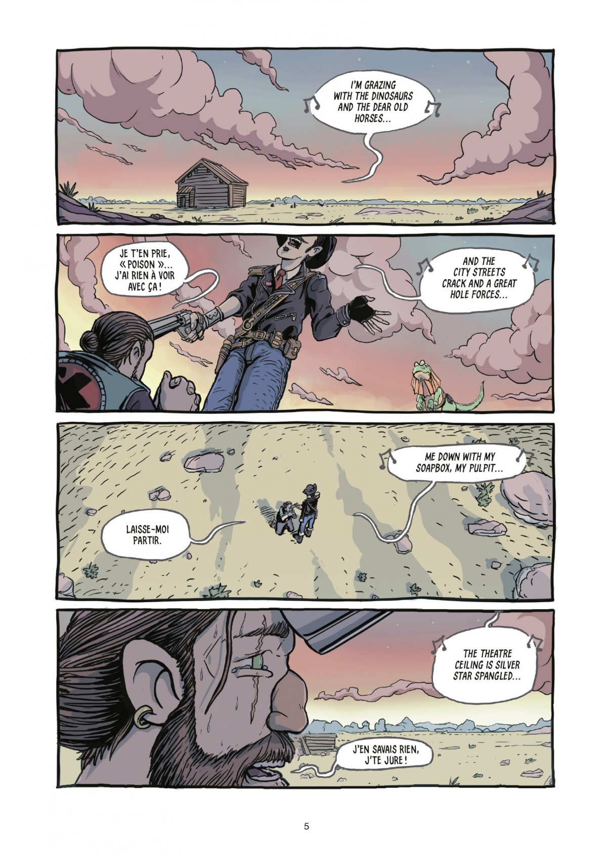 Faites débouler dans le cadre classique d’un western, des dinosaures, des mondes parallèles, une petite fille mutique qui tire plus vite que son ombre : vous entrez de plein pied dans le monde exubérant de Kids with Guns