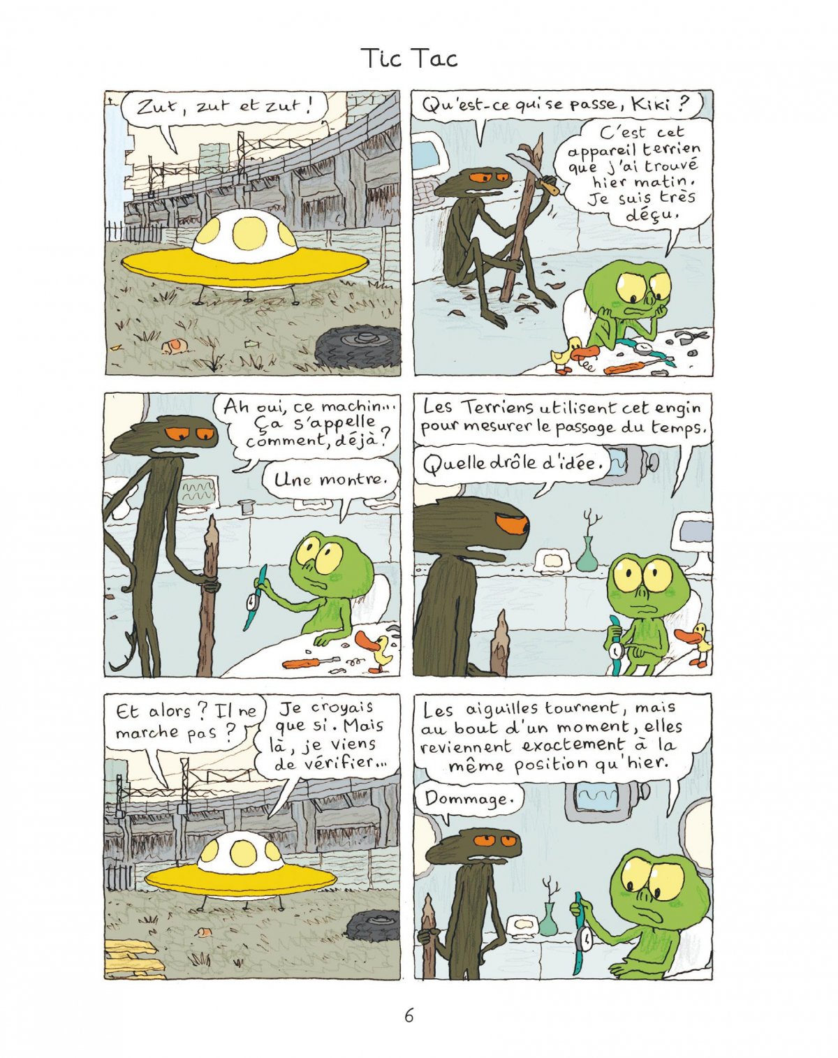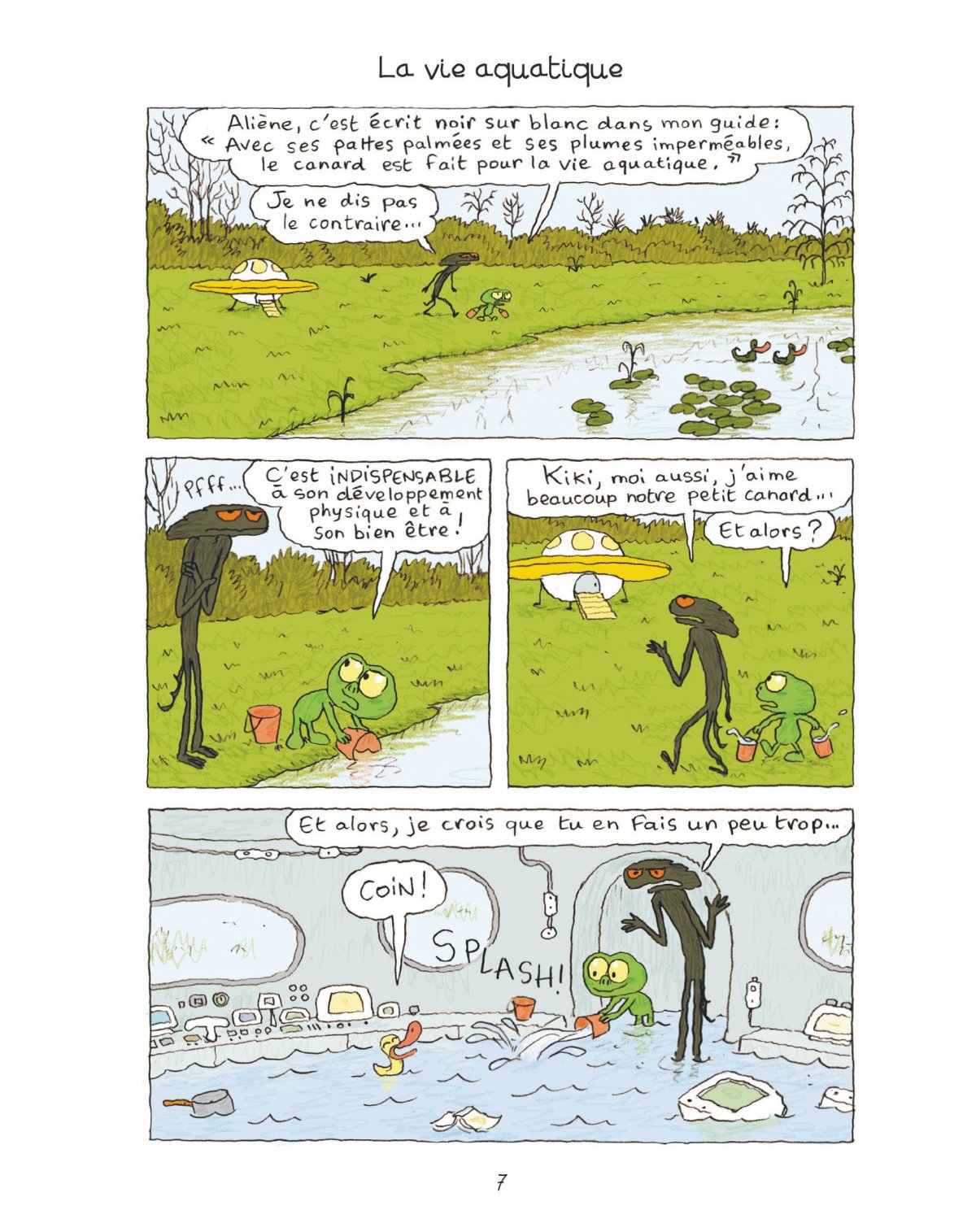 Kiki est toujours aussi passionné par le mode de vie des humains, cherchant à tout prix à essayer chacune de leurs traditions ! Entre un réveillon de Noël à manger des cailloux, les recettes de cuisine prises au pied de la lettre et l’incompréhension du système scolaire... être un extraterrestre n’est pas de tout repos ! Heureusement pout Kiki, Aliène est là pour l’empêcher de partir trop loin dans ses découvertes ! Plus réservé, moins bienveillant, parfois un tout petit poil irascible... Mais pas méchant dans le fond. Son truc ? Rester dans la soucoupe pour fuir les folles aventures de son compère Kiki.