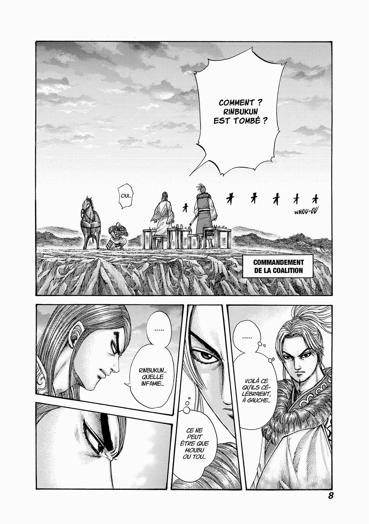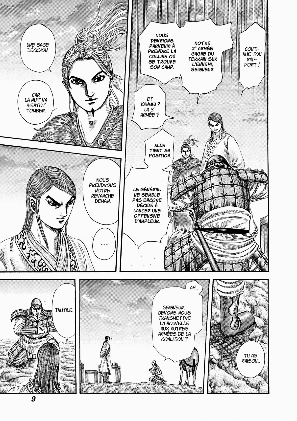 Lors de son duel contre Mangoku, cruel général de l’armée de Zhao qui semble être animé que par une insondable et triste rancoeur, Shin prend de nouveau conscience de la signification du combat qu’il mène avec ses hommes. Un nouveau général apparaît alors face à l’armée de Qin, tandis que la bataille pour la Porte de Kankoku s’intensifie sur tous les fronts... !!