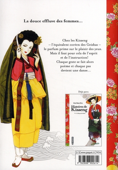 Fleur de lotus et la fleur de poirier (La) est le volume 2 de la série Kisaeng (Histoires de) par Kim Dong Hwa, paru en 2009. Selon nos informations, il n'en existe qu'une seule édition, publiée par Paquet.