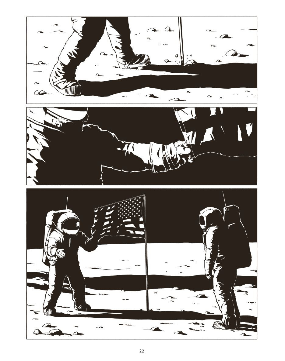 Malgré une frayeur technique, tout s’est bien passé. Pourtant, au moment de repartir, Armstrong se retourne une dernière fois pour observer le paysage et reste figé : dans la visière de son casque, se reflète un drapeau soviétique et un LEM russe...
