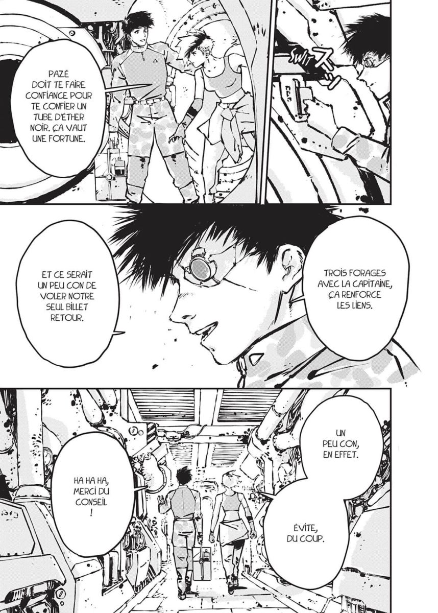 Mille ans plus tard, Eden, d’origine martienne, rejoint un groupe de contrebandiers de l’espace : les scavengers. Sous les ordres d’un mystérieux commanditaire, leur périlleuse mission est de forer clandestinement un trou noir, afin de prélever quelques gouttes du précieux éther. Mais la toute puissante Église de la Résurrection, qui vénère les krakens comme des dieux, n’entend pas les laisser faire !