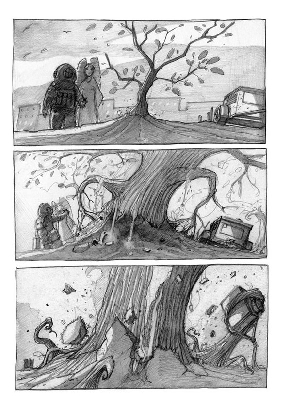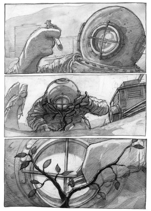Un scaphandrier contemple la photo d’un arbre mystérieux, puis émerge et part à sa recherche. C’est le début d’une quête initiatique. Là-haut, il croise les habitants rétro de la ville rêvée de Vevey, qui le mènent auprès d’un ange aux ailes bandées. Plus tard, un arbre géant surgit du sol, un petit gavroche fait des songes qui le transportent chez un vieux magicien et un dictateur qui veut être artiste-peintre s’attaque à coups de canon à l’arbre, obscénité géante dans le paysage urbain.