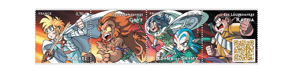 A partir du 19 septembre prochain, les fans de la série Les Légendaires (et ils sont nombreux !), créée en 2004 par Patrick Sobral aux éditions Delcourt vont pouvoir se procurer de quoi affranchir leur courrier à l’effigie de Danaël, Jadina et Shimy, qui figureront sur les timbres, accompagnés évidemment par Gryf et Razzia, représentés sur des vignettes sans valeur faciale. De quoi satisfaire les fans de ce manfra, pour la modique somme de 1,40 euros, soit la valeur de deux timbres. Tirés à 600 000 exemplaires, ces diptyques seront disponibles facilement en bureau de poste.